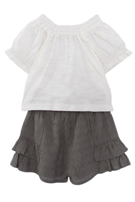 BABY GIRLS’ ECRU TOP AND KHAKI SHORTS