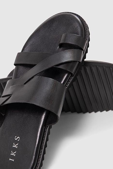 BLACK LEATHER MULES WITH FANCY STRAPS