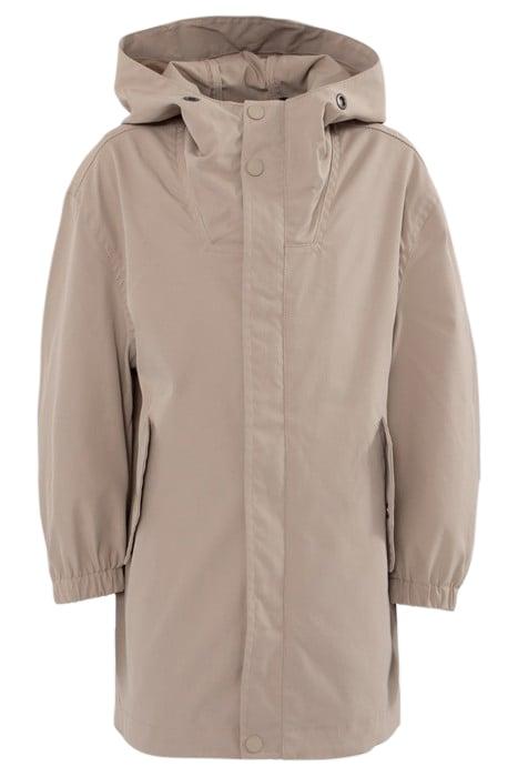 BOYS’ BEIGE HOODED PARKA WITH EMBROIDERED BACK