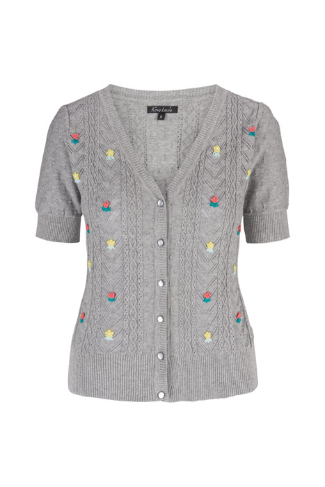 Een zomervestje van luchtig katoen dat makkelijk combineert met een rok of broek. Het V-hals model heeft ingebreide kabels en ajourmotieven en er zijn subtiele nopjes verwerkt in de mouw. Het borduursel met bloemetjes zorgt voor een mooi accent. Lengte in maat M: 56 cm Vest met korte mouw Opgenaaid borduursel V-hals en knoopsluiting Luchtig gebreid katoen met ingebreide ajourpatronen en nopjes-100% cotton