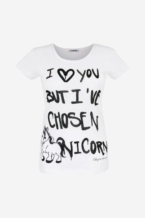 Slub Yarn T-Shirt With Statement Print Unicorn