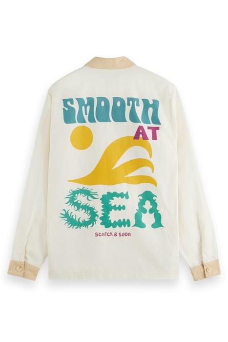 Colourblock Cotton-Linen Worker Jacket With Artwork