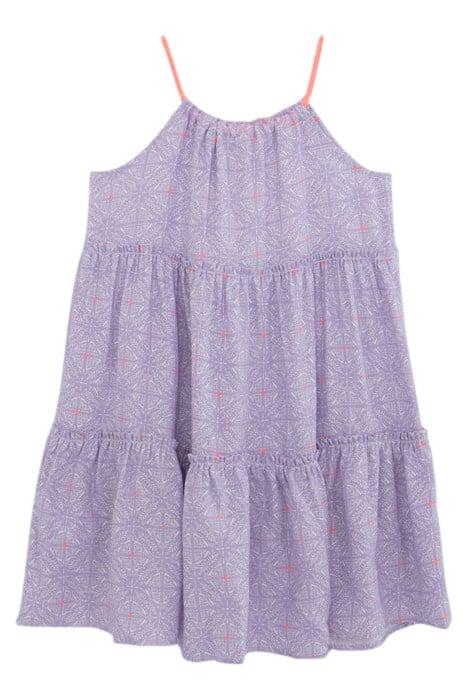 GIRLS' LILAC DRESS, CUBAN EARTHENWARE PRINT & NEON STRAPS