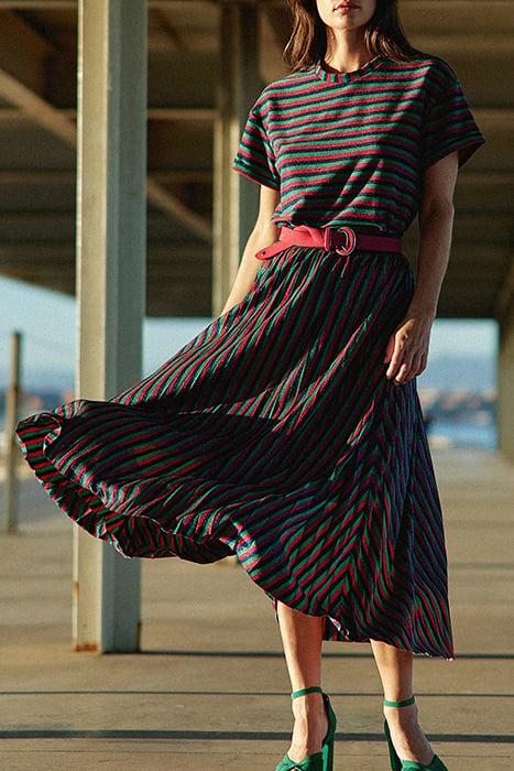 GLITTERY MAGENTA LONG SKIRT WITH COLOURED STRIPES