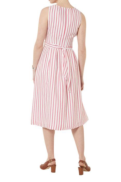 Sleeveless Pink And White Stripe Linen Dress With Tie Belt.
