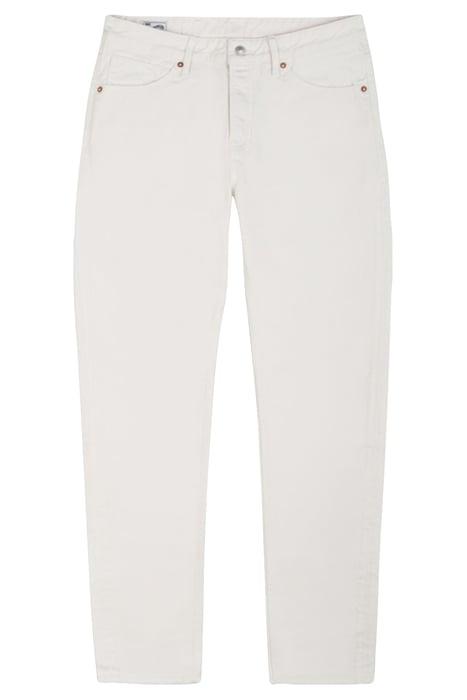 Long Rise, Tapered Leg, Non-Stretch.