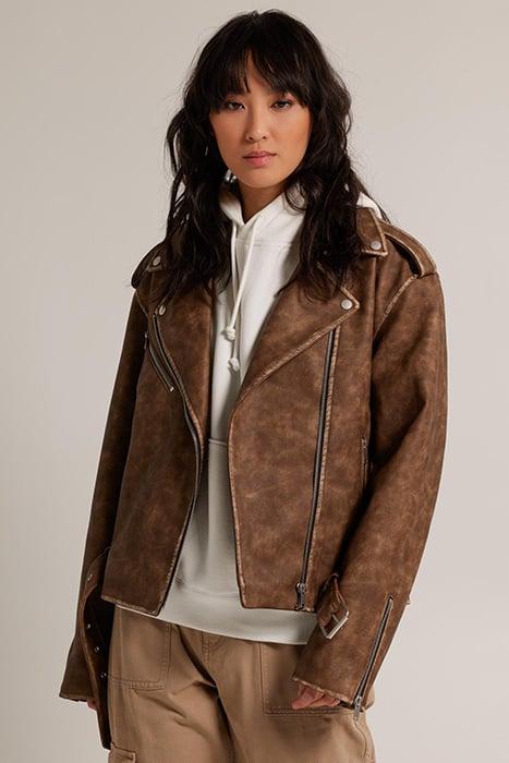 America Today Women'S Jacket. The Juno Is A Vintage Look Biker Jacket Made Of Faux Leather And Silver Details. The Jacket Has A Zipper Closure And Two Side Pockets With A Zipper Closure.
