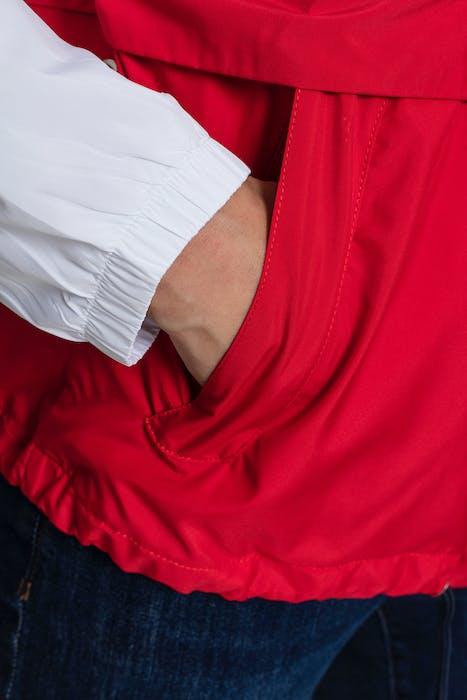 LADIES 3-TONE OVERSIZE WINDBREAKER NAVY/WHITE/FIRE RED
