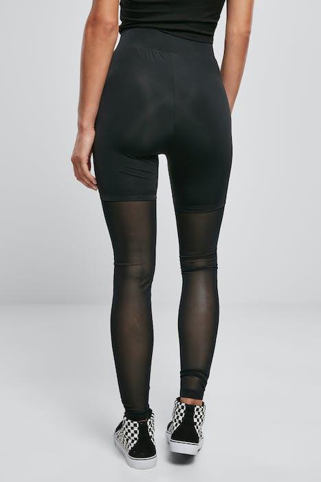 LADIES HIGH WAIST TRANSPARENT TECH MESH LEGGINGS BLACK