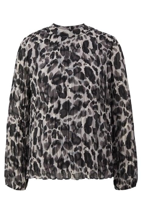 Chiffon Blouse With Motif And Stand-Up Collar, All_Over_Print, Long Sleeves|Elasticated Cuffs