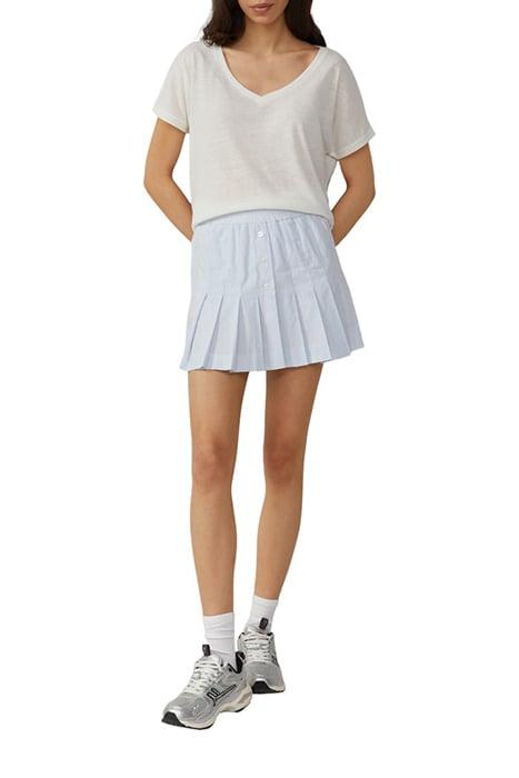 Details: Deelnaad Eigenschap: Zacht Hals: V-Hals Materiaal: Linnenmix Mouwen: Vleermuismouwen, Korte Mouwen Pasvorm: Loose Fit Stof: Jersey Zoom: Afgeronde Zoom