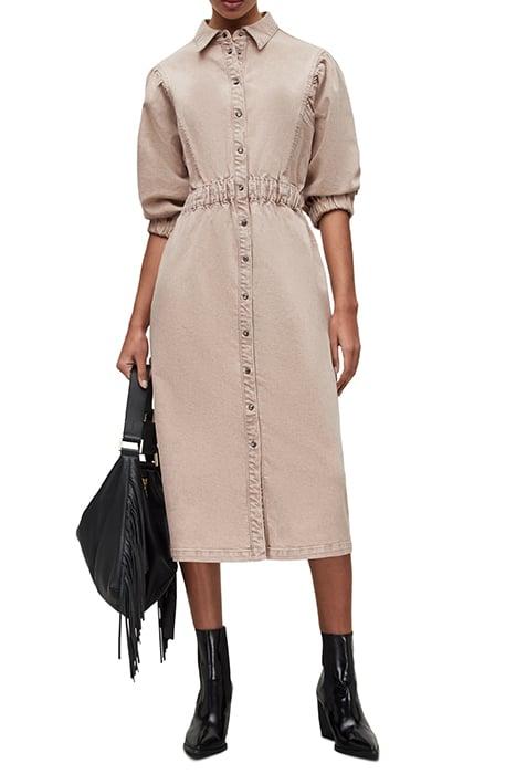Osa Denim Dress Washed Pink. Blending classic craftsmanship with modern textures, the Shirt Dresses in Beige offers an elevated take on casual dressing. A key addition to any wardrobe, this piece is designed for those who seek effortless style.