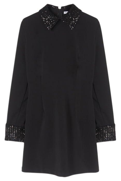 SHEATH DRESS WITH EMBROIDERED COLLAR BLACK