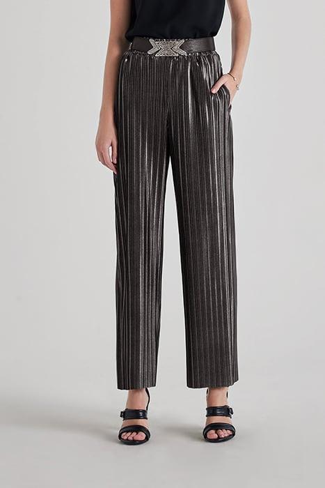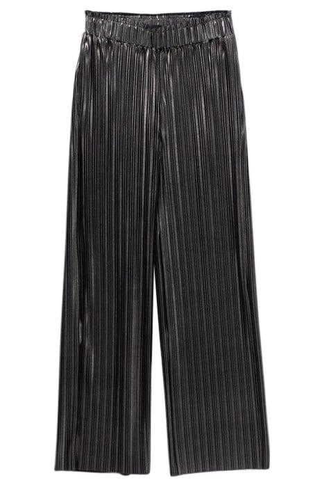 SILVER PLEATED WIDE-LEG TROUSERS