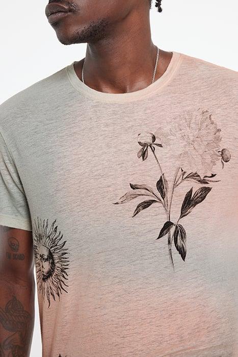 A Dreamy Base Completed With An Artistic Touch. This Tee Is Made From A Lightweight Linen-Modal Blend Fabric And Shaped To Our Signature Crew Neck Shape. Tattoo Prints Are Scattered On A On A Softly Dyed Pallete.