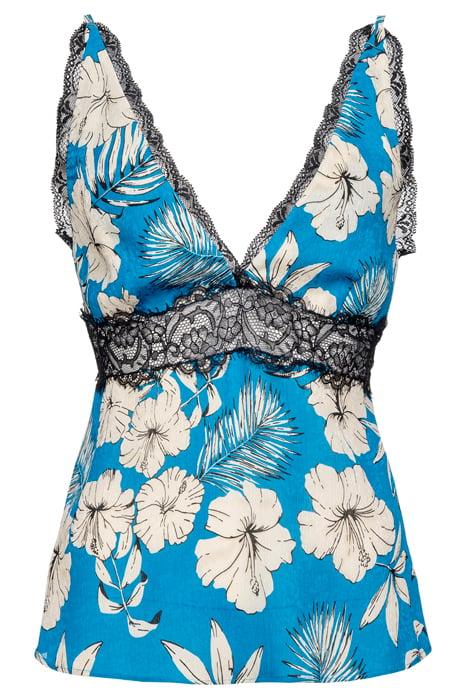 TROVATO TOP JAQUARD STAMPA FIORE GRAFICO TURQUOISE/BUTTER/BL