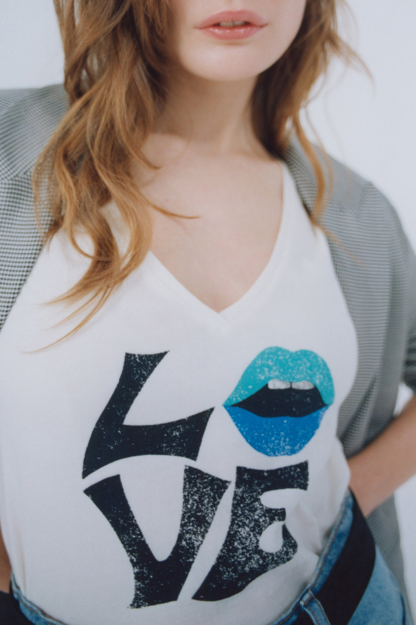 WHITE LIPS AND SLOGAN IMAGE ORGANIC COTTON T_SHIRT